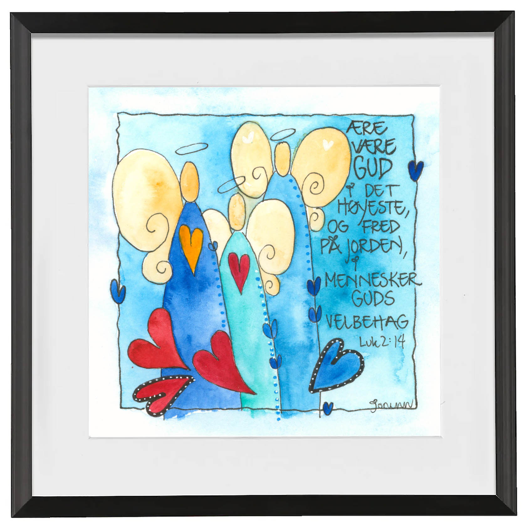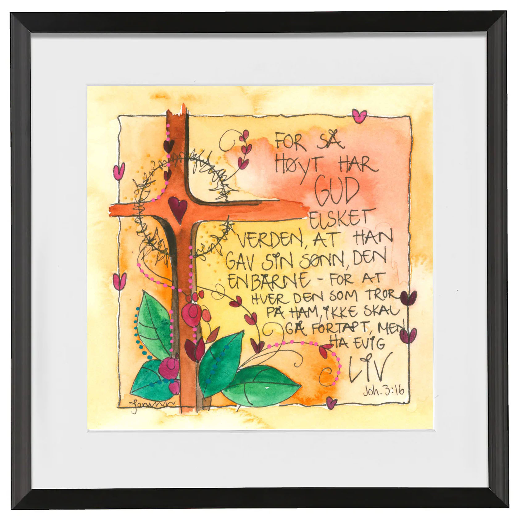 Håndmalt go’ordbilde. Selve bildet er ca 11x11cm. Ferdig innrammet med passepartout og aluminiumsramme med glass. Ca.20x20cm.