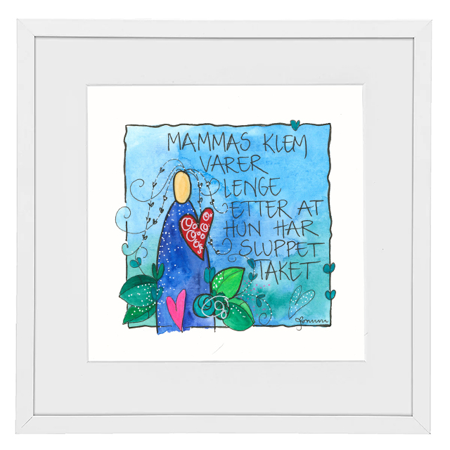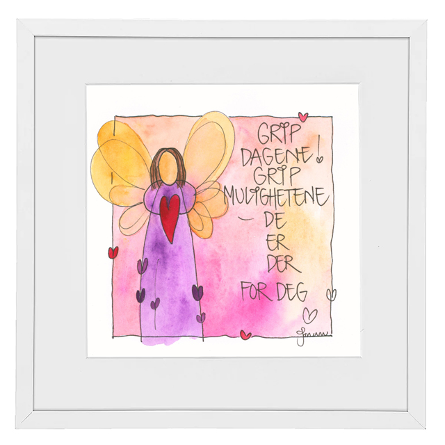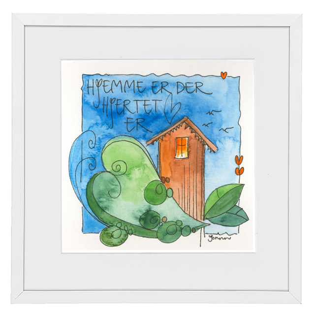 Håndmalt go’ordbilde. Selve bildet er ca 11x11cm. Ferdig innrammet med passepartout og aluminiumsramme med glass. Ca.20x20cm.