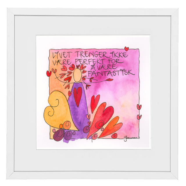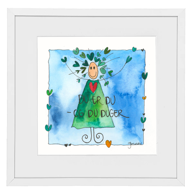 Håndmalt go’ordbilde. Selve bildet er ca 11x11cm. Ferdig innrammet med passepartout og aluminiumsramme med glass. Ca.20x20cm.