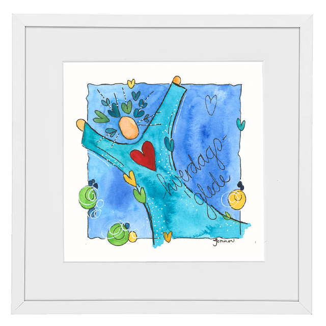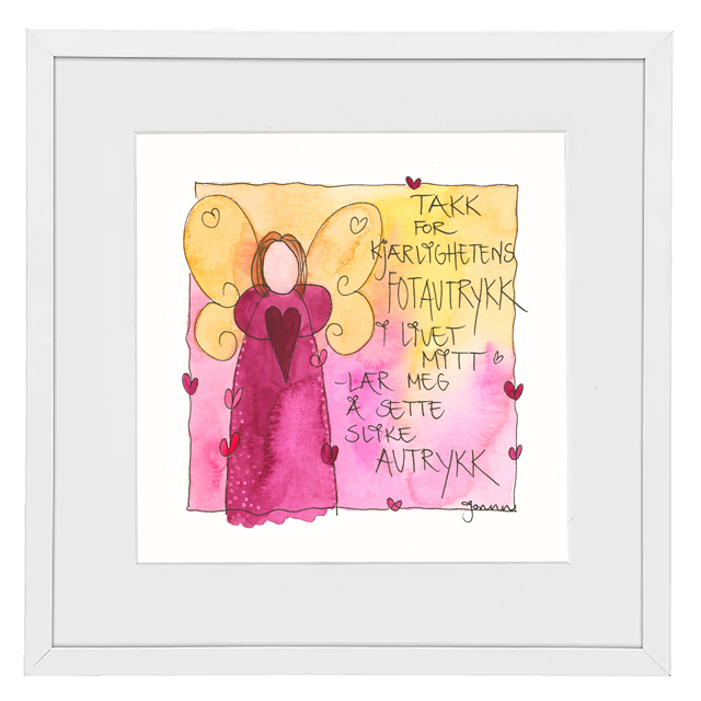Håndmalt go’ordbilde. Selve bildet er ca 11x11cm. Ferdig innrammet med passepartout og aluminiumsramme med glass. Ca.20x20cm.