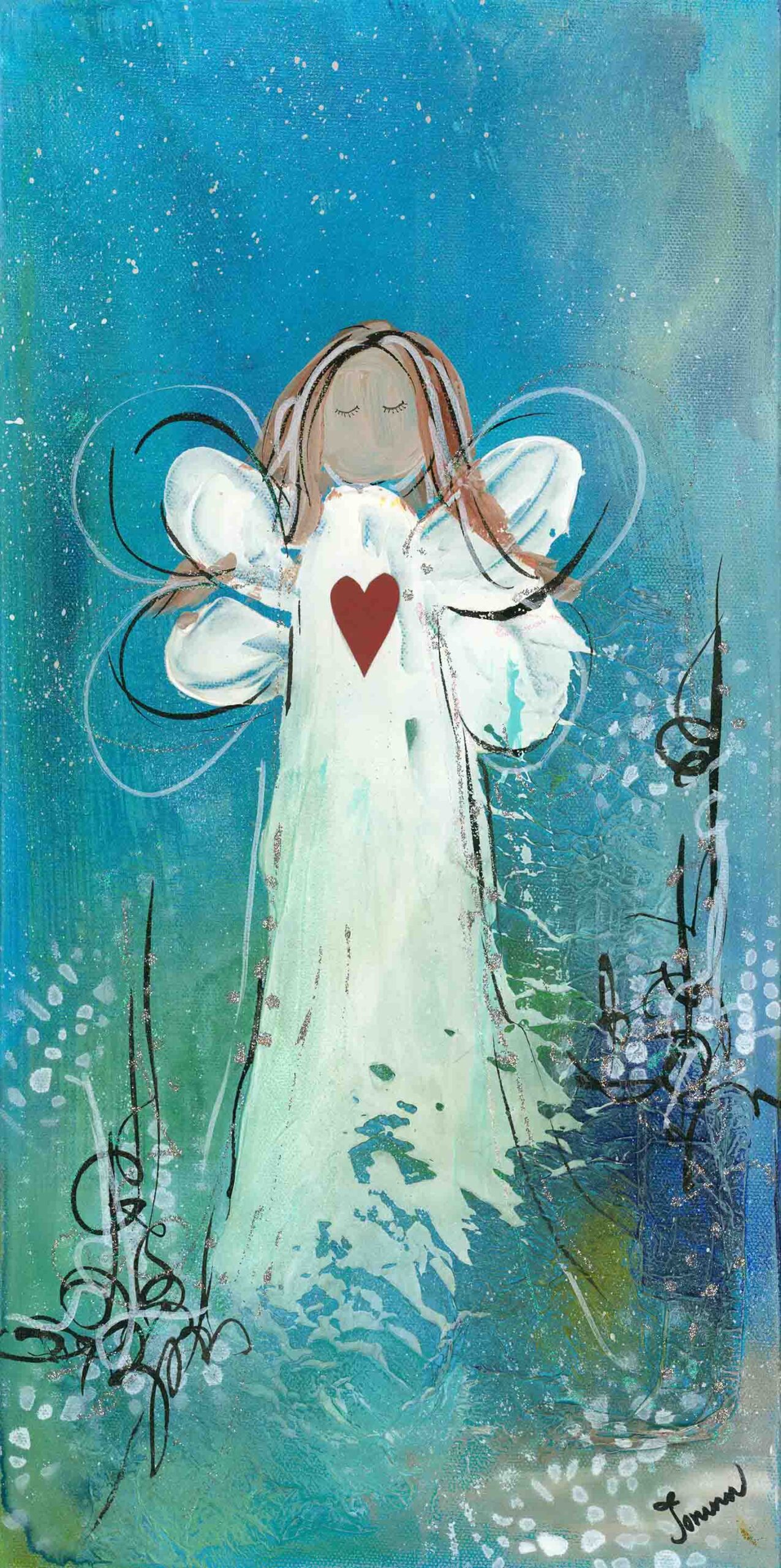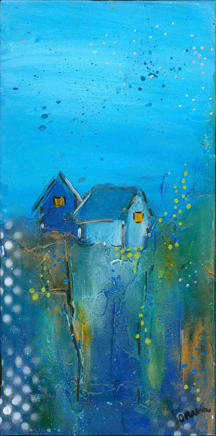 Orginalmaleri. Str. 15cm X 30cm, oppspent bomullslerret på blindramme. Oppheng. Kantene er malt svarte.