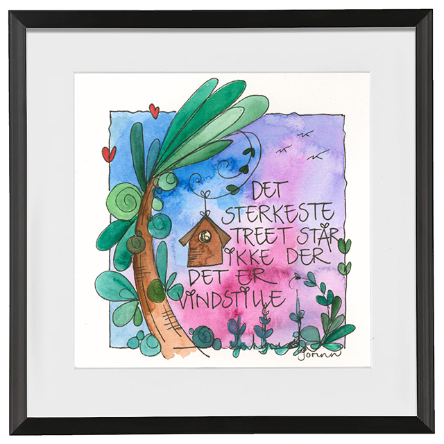 Håndmalt go’ordbilde. Selve bildet er ca 11x11cm. Ferdig innrammet med passepartout og aluminiumsramme med glass. Ca.20x20cm.