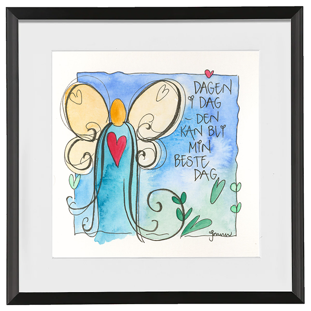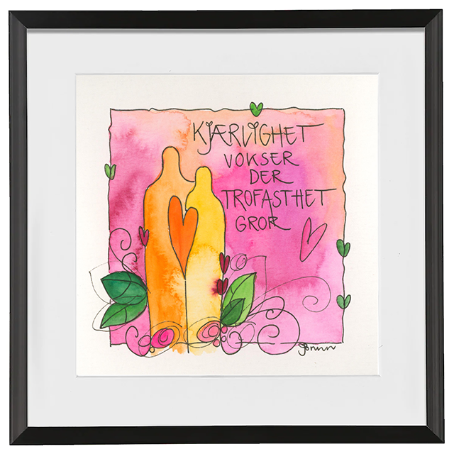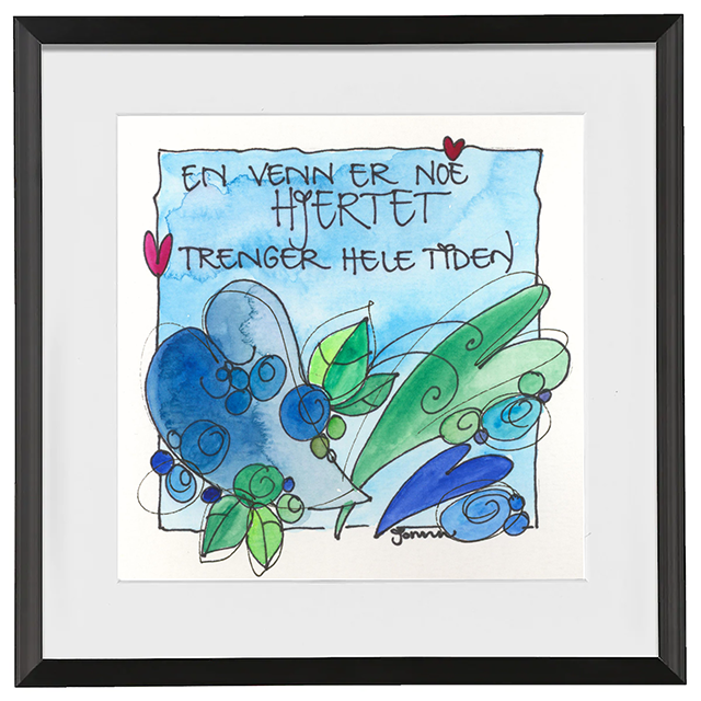Håndmalt go’ordbilde. Selve bildet er ca 11x11cm. Ferdig innrammet med passepartout og aluminiumsramme med glass. Ca.20x20cm.
