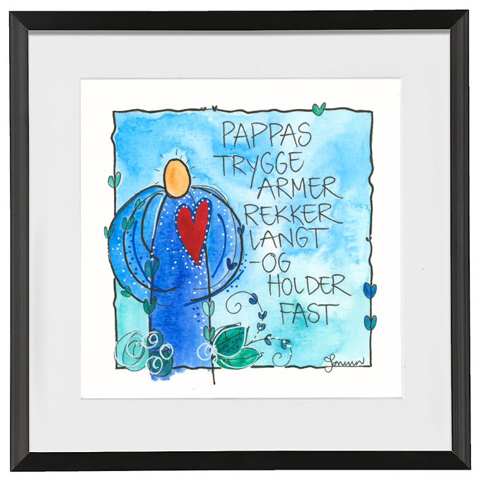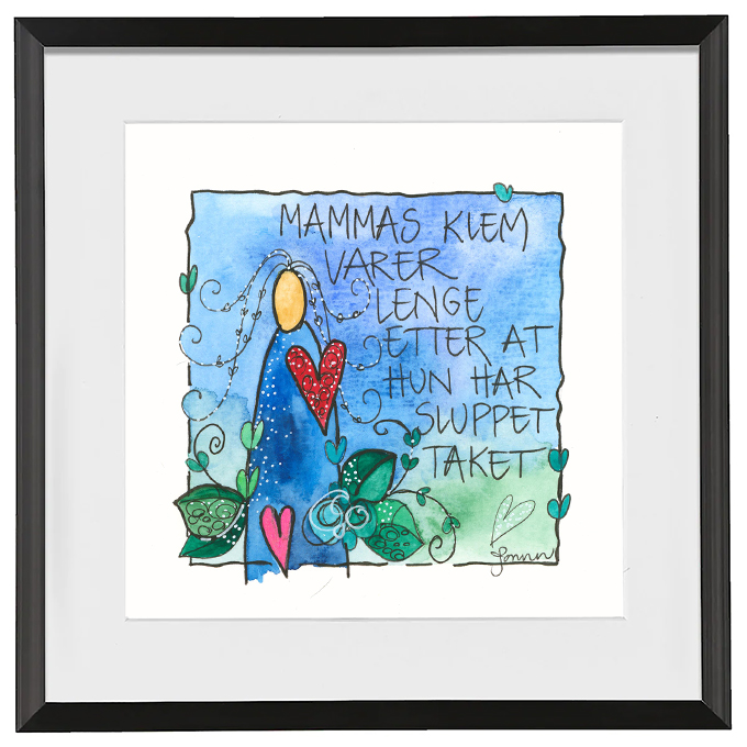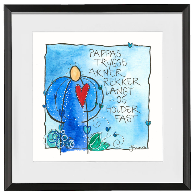 Håndmalt go’ordbilde. Selve bildet er ca 11x11cm. Ferdig innrammet med passepartout og aluminiumsramme med glass. Ca.20x20cm.