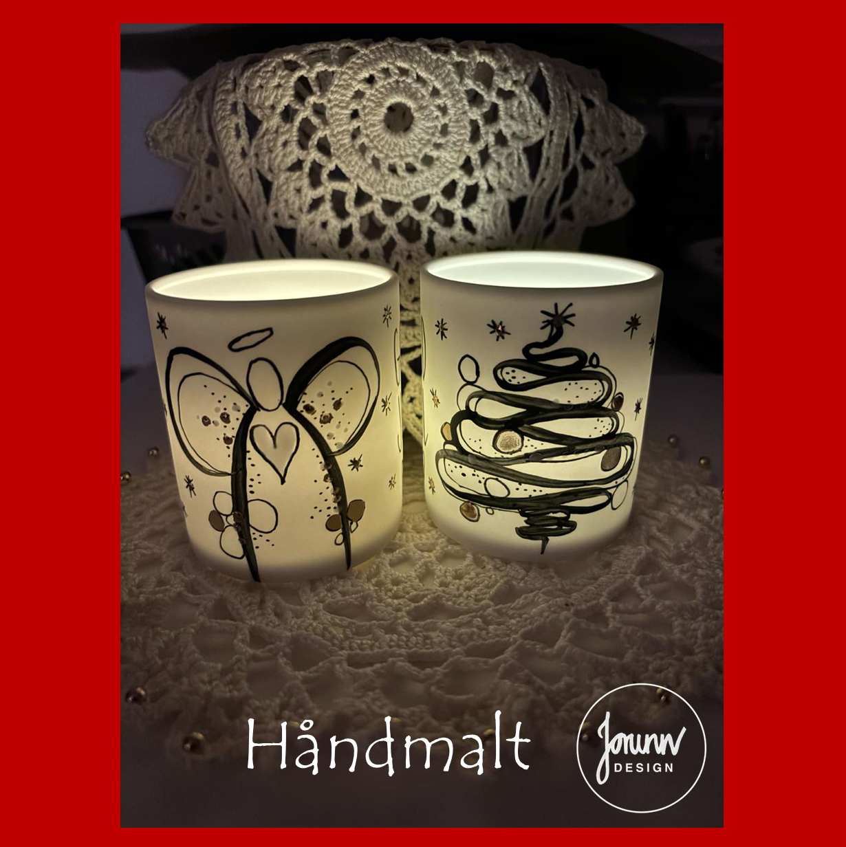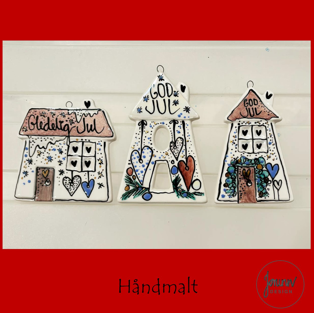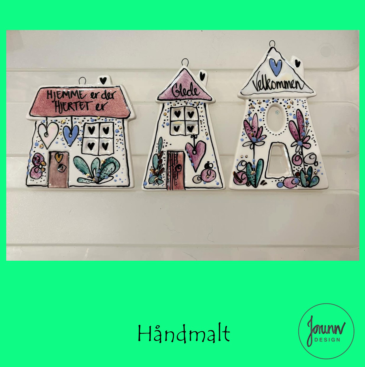 Håndmalt -det betyr at varen  er ganske lik som på bildet, men likevel unikt.